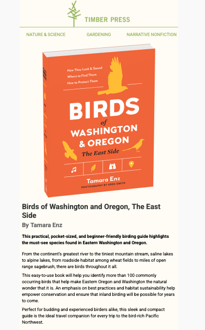 Yesterday, Timber Press released the latest in the Best Little Book of Birds series… Hooray for the East Sides of Washington and Oregon.Â